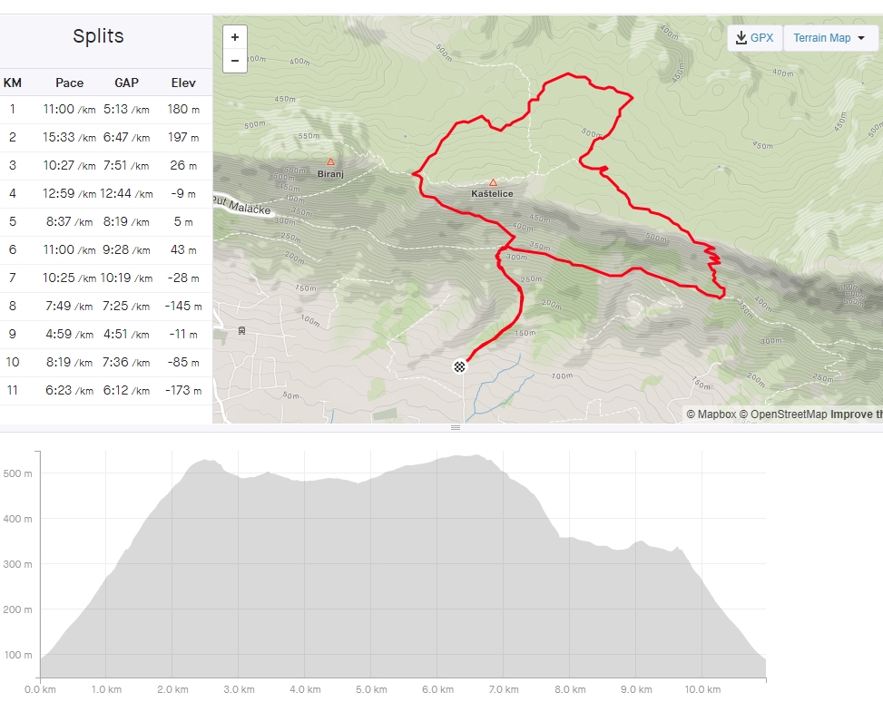 Na prošlom noćnom treningu bilo nas je čak 14 i mislili smo da je to lipa slučajnost, no i na današnjem 37. treningu opet se skupila lipa brojka od nas 13 pa već lagano sumnjamo u slučajnosti (Perković, Špar, Lemac, Matas, Anterić, Boljat, Tomić, Gašić, Jelena, Bubić, Pivčević, Marasović i novo mlado lice Petar Grabić) 😎 Startali smo od “naše” Crkve Gospe od Dračin, put Križica, Odrtice, niz Koludar i natrag. 11km sa 550m+ uspona, dok je grupa “B” napravila koji km kraće 😉